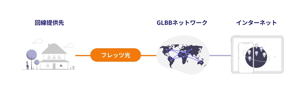 お客様宅内からインターネット接続までの経路を専有し、高品質で安定したインターネット接続を提供します。